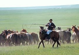 There are many local cultural activities available including cavalry reception, a traditional three-skill contest, the experience of the Mongolian lifestyle, entertainment activities, viewing Mongolian customs and performances and the World Nomad Cultural Park. Tourists may have a chance to taste roast lamb, roast gigot, mutton eaten with the hands, a traditional whole sheep feast. They may also enjoy genuine craftworks. On every May 13 of the lunar calendar, the herdsmen hold their traditional “heaps of stones” worship here and every July 25-31 hold a grassland nadamu festival. |